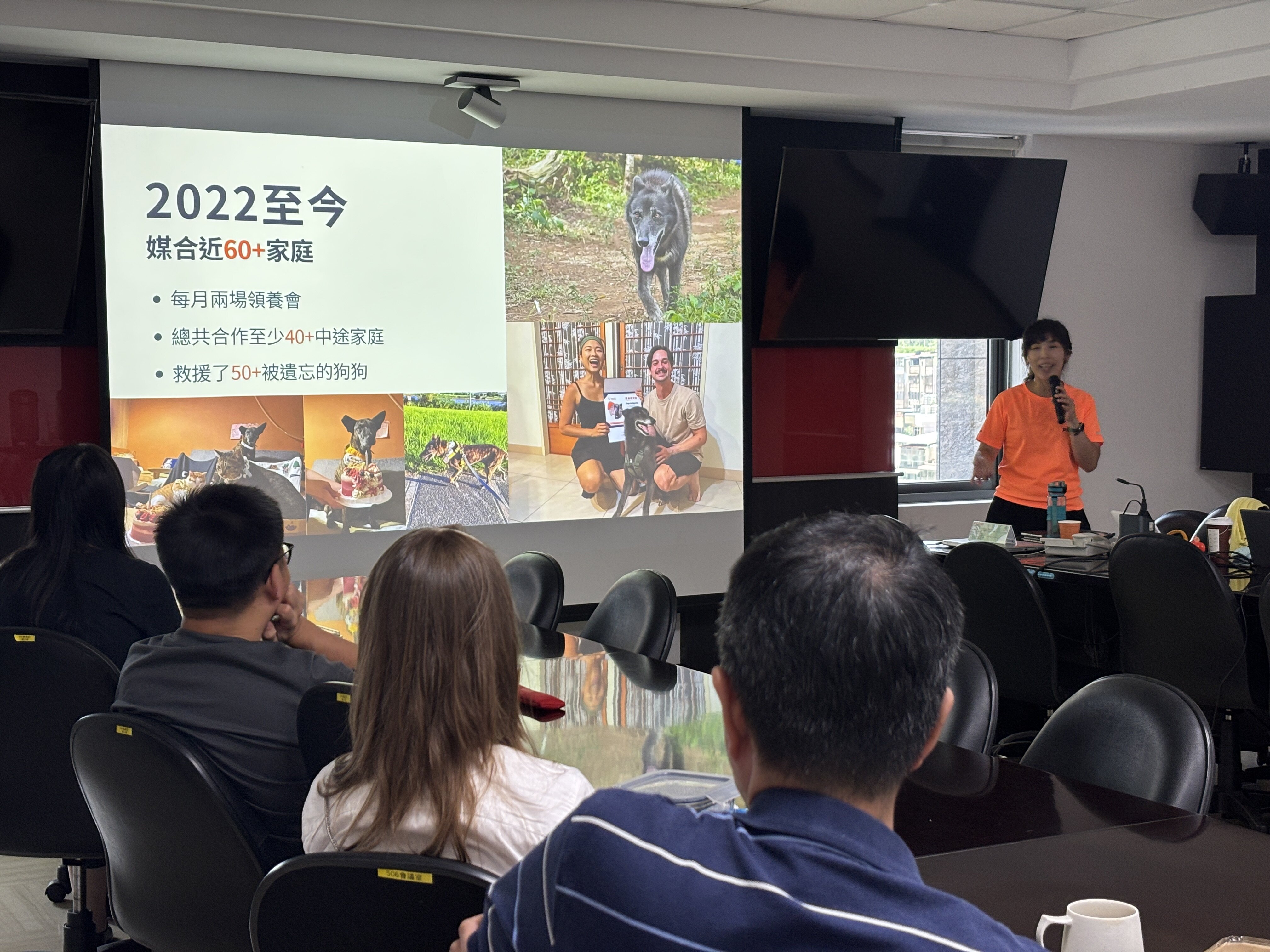 2025 年 8 月中舉辦的「吃便當聽故事講座」,邀請巴克幫執行長 Echo Wang 與狗狗親善大使姆姆,分享浪犬陪伴的核心理念。